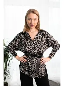 Рубашка шелковая с принтом оверсайз