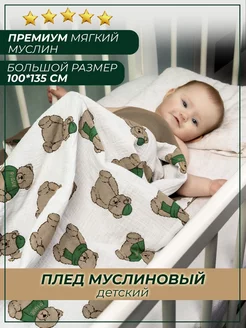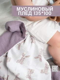 Муслиновый плед детский в кроватку хлопок 130*100см