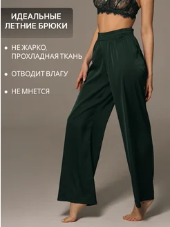 Брюки летние шелковые домашние на резинке палаццо