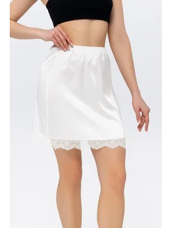 Юбка женская мини атласная с кружевом бельевой стиль