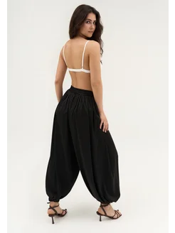Брюки широкие шелковые домашние на резинке алладины