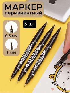 Маркер перманентный двухсторонний 0,5-1мм 3 шт набор