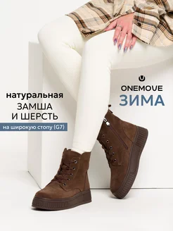 Зимние полусапожки из натуральной замши на низком каблуке