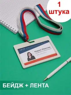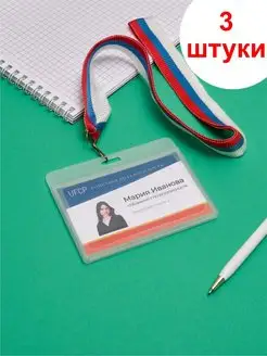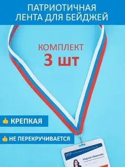 Лента для бейджа триколор с карабином, Шнурок для бейджа