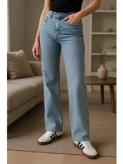 Джинсы женские Светло голубые палаццо с высокой посадкой