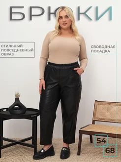 Брюки больших размеров кожаные на резинке осенние