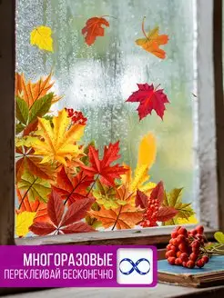 Наклейки на окна статические двусторонние Осенние