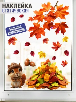 Наклейки осенние статические двусторонние Белочка с листьями
