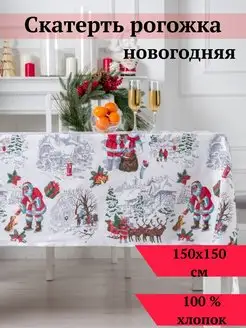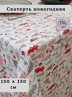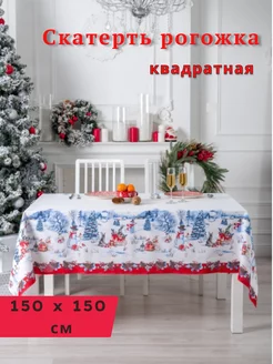 Скатерть тканевая новогодняя рогожка квадратная на стол