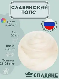 Шерсть для валяния лента для фелтинга молоко 50 гр