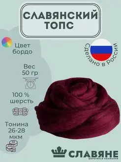Шерсть для валяния лента для фелтинга бордо 50 гр