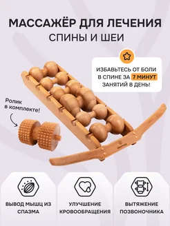 Массажер для шеи и спины деревянный 6роликов + 1 с шипами