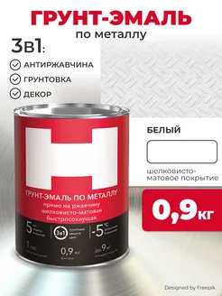 Грунт- эмаль по ржавчине 3 в 1 белая 0,9 кг