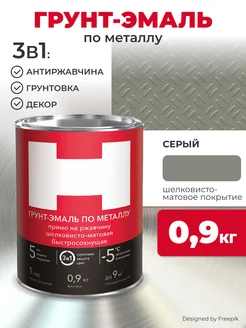 Грунт- эмаль по ржавчине 3 в 1 серая 0,9 кг