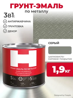 Грунт- эмаль по ржавчине 3 в 1 серая 1,9 кг