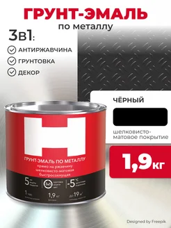 Грунт- эмаль по ржавчине 3 в 1 черная 1,9 кг