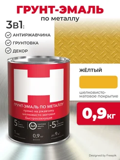 Грунт- эмаль по ржавчине 3 в 1 желтая 0,9 кг
