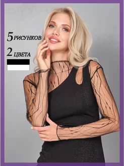 Блузка водолазка черная сетка листья