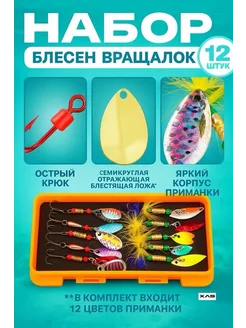 Блесна вращалки набор 12в1 для рыбалки в кейсе