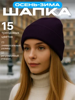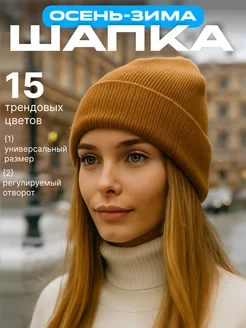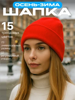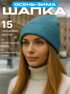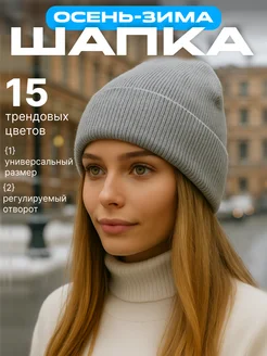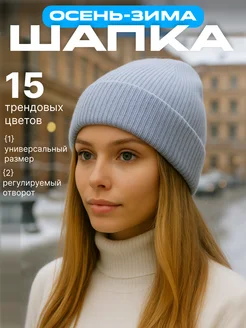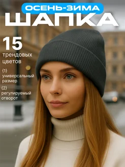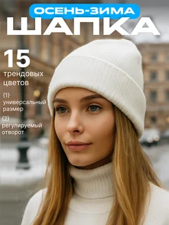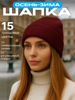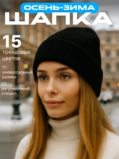 Шапка женская зимняя осенняя-весенняя бини с отворотом