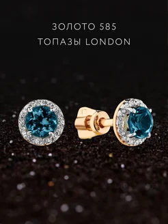 Серьги гвоздики золото 585 топаз