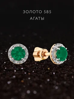 Серьги гвоздики агат натуральный золото 585