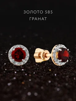 Серьги золото с гранатом 585 гвоздки