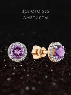 Гвоздики с аметистом золото 585