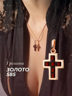 Золотая подвеска 585 с гранатом крестик