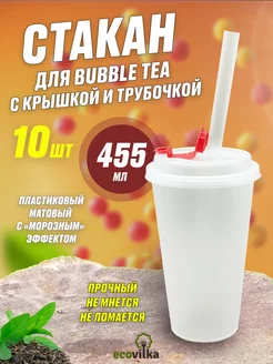 Стаканы пластиковые бабл ти с крышкой и трубочками 455 мл