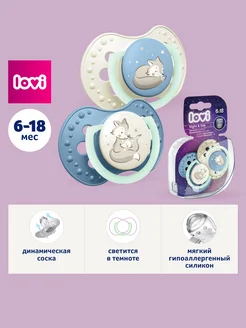Соска пустышка силиконовая от 18 мес, светится в темноте, 2…