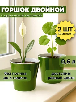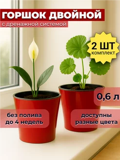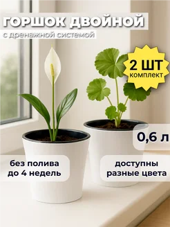 Горшок двойной ARTE с системой автополива 0,6л, 2шт