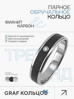Кольцо обручальное, серебро 925 пробы, парное, с карбоном