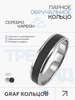 Кольцо обручальное, серебро 925 пробы с карбоном,парное
