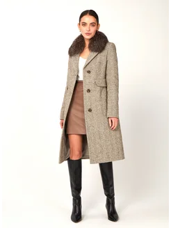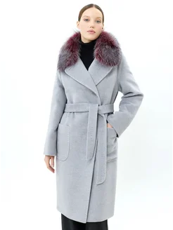 Пальто из альпаки еврозима с натуральным мехом BLUEFROST