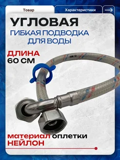 Гибкая подводка для воды с угловым отводом из нейлона 60 см
