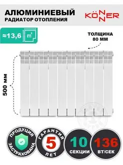 Радиатор алюминиевый LUX 100 500, 8 секции