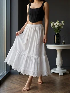 Нижняя юбка длинная подъюбник с кружевом