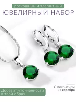 Серьги кулон и цепочка вечерний набор бижутерии