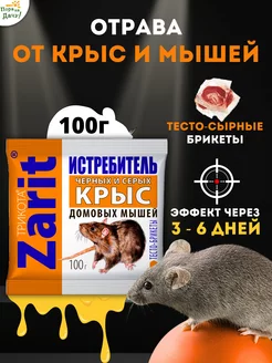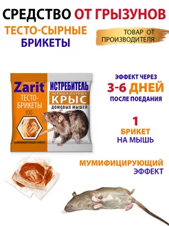 Мощная отрава для мышей и крыс тесто-брикет 200г*3 шт,Зарит