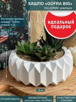 Кашпо для суккулентов и кактусов из гипса Астра Big, 650 мл