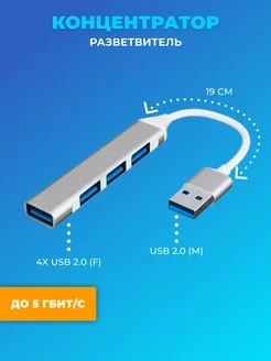 USB 2.0 концентратор, разветвитель, хаб 4xUSB 2.0, 19 см
