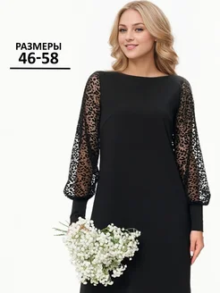 Платье лапша черное офисное больших размеров