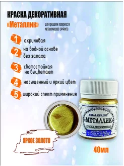 Краска декоративная "Металлик", Яркое Золото, 40мл