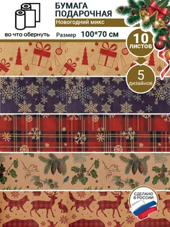 Упаковочная бумага для подарков новогодняя набор 10листов