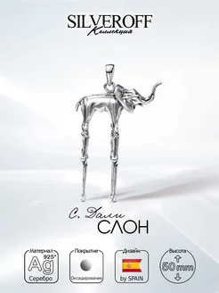 Серебряная подвеска Слон Сальвадор Дали, большой, оксид