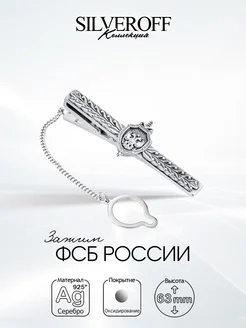 Серебряный зажим для галстука эмблема ФСБ России, чернение