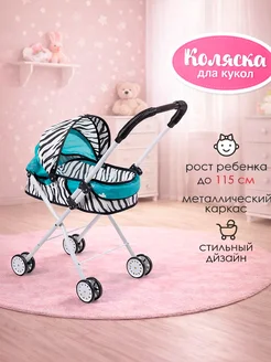 Коляска для кукол зебра универсальная, металлический каркас