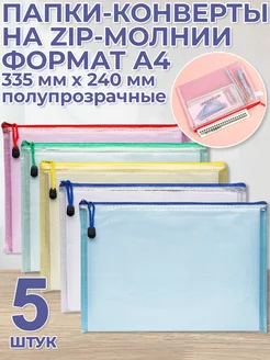 Папка А4 на zip молнии прозрачная, набор 5 штук