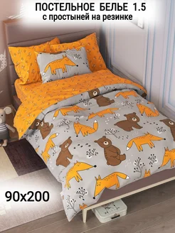 Постельное белье детское 1.5 c простыней на резинке 90х200